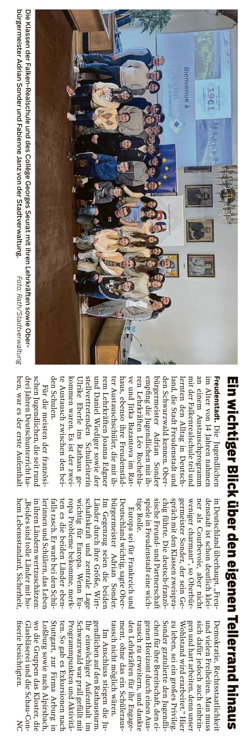 Im April fand der Schüleraustausch zwischen der Falkenrealschule Freudenstadt und dem Collège Georges Seurat in Courbevoie statt. Bei strahlendem Wetter wurden unsere Schülerinnen und Schüler herzlich von ihren Austauschpartnerinnen und -partnern sowie deren Familien in unserer Partnerstadt Courbevoie empfangen.